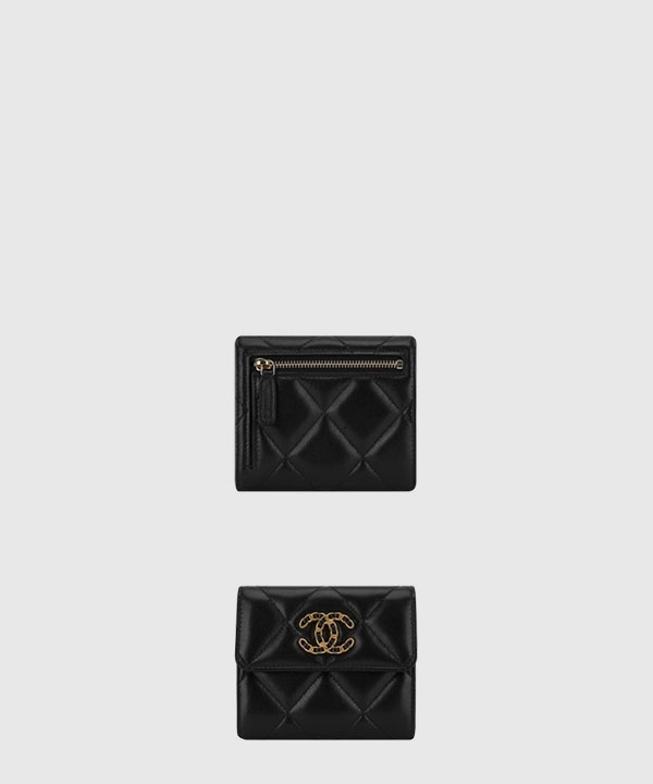 샤넬 19 스몰 플랩 반지갑 블랙 AP1064