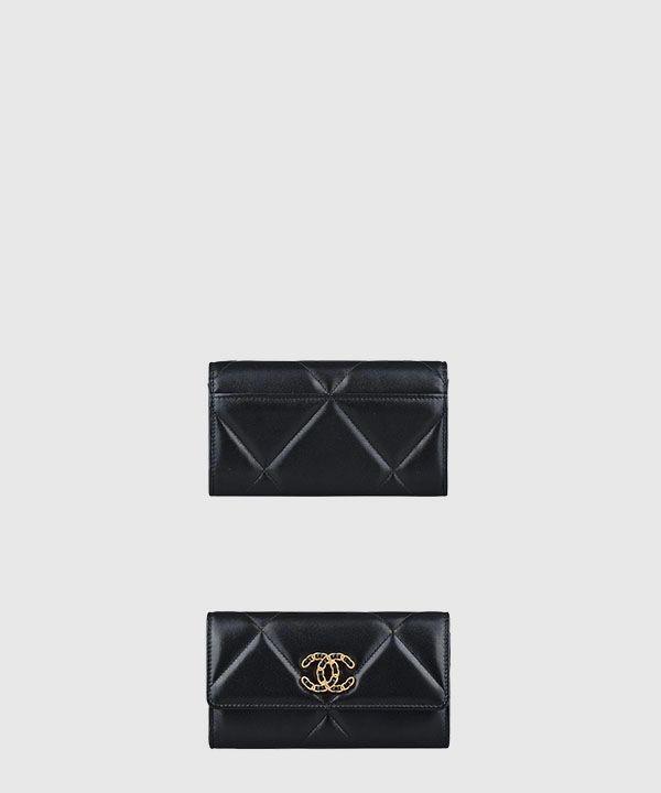 샤넬 19 플랩 장지갑 램스킨 블랙 AP0953