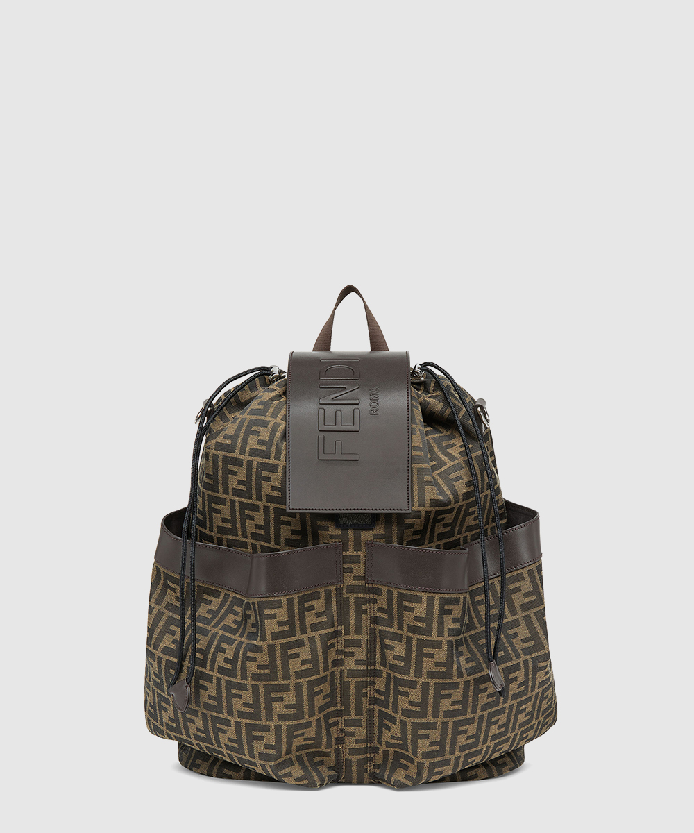 펜디 스트라이크 라지 FF 자카드 패브릭 백팩 브라운 7VZ056