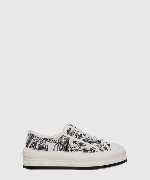 Dior Walk'N'Dior Platform Sneakers (디올 워크앤디올 플랫폼 스니커즈) 화이트 블랙 Plan de Paris 모티브 자수 코튼 KCK385KPY-S15W