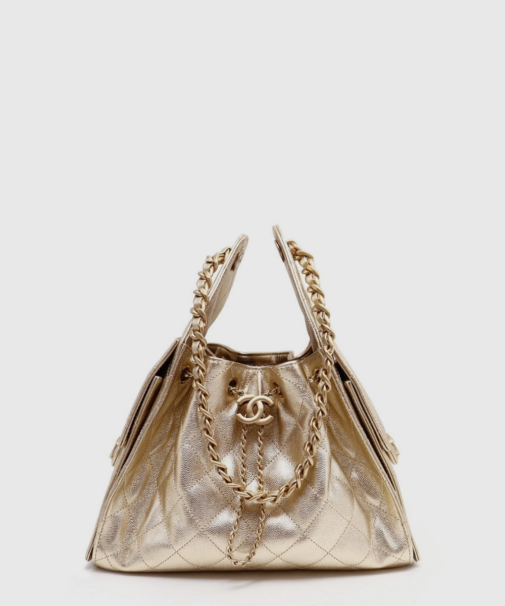 샤넬 25백 스몰 그레인드 카프스킨 메탈릭 다크 골드 AS5293