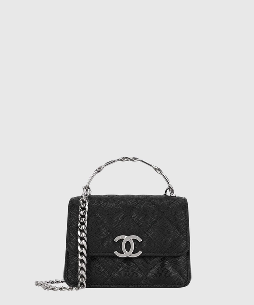 샤넬 코코 로고 체인백 미니 캐비어 블랙 금장 AP2758