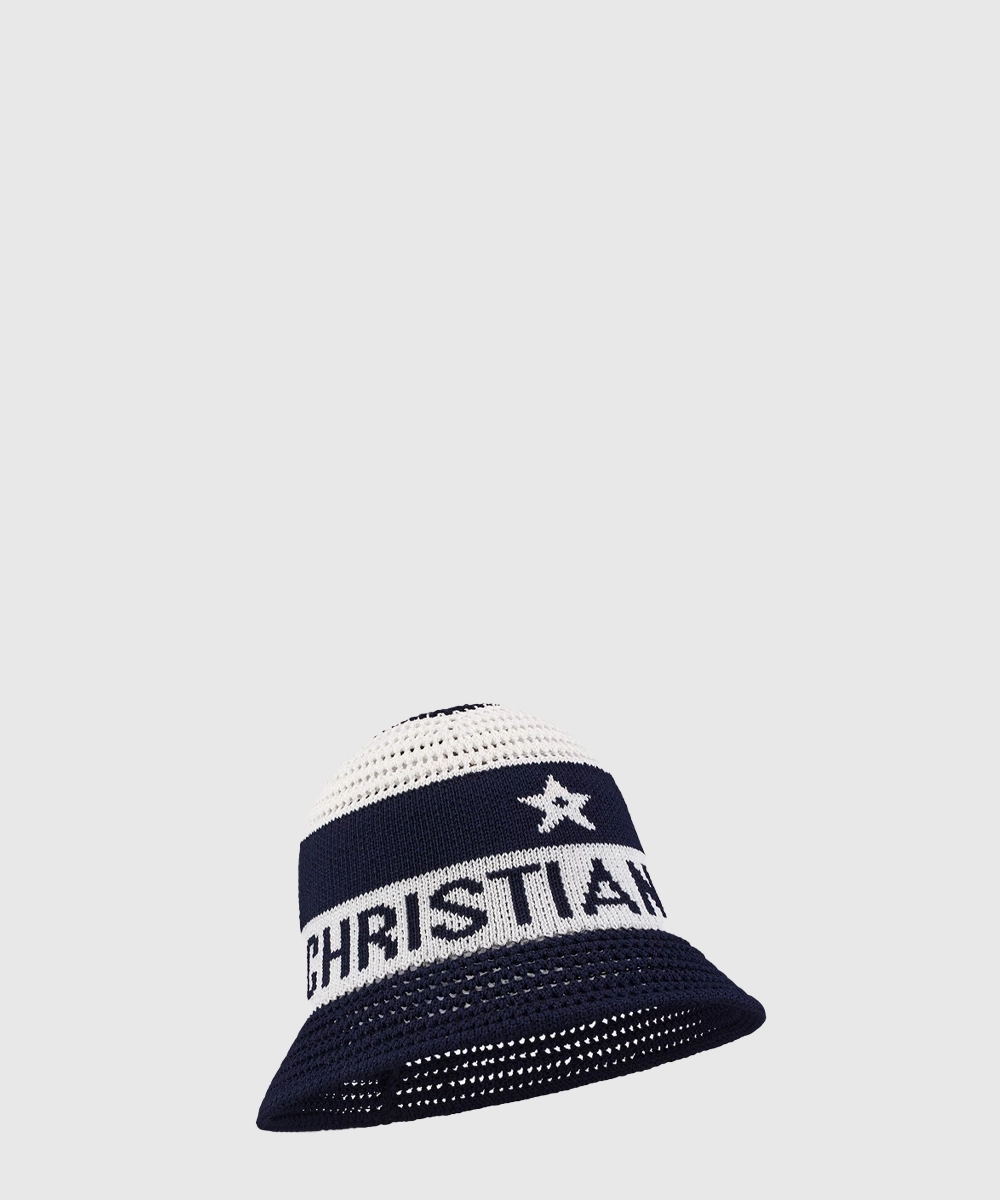 디올 D-Tulipe 클로슈 블루 화이트 코튼 니트 블렌드 31CDE9