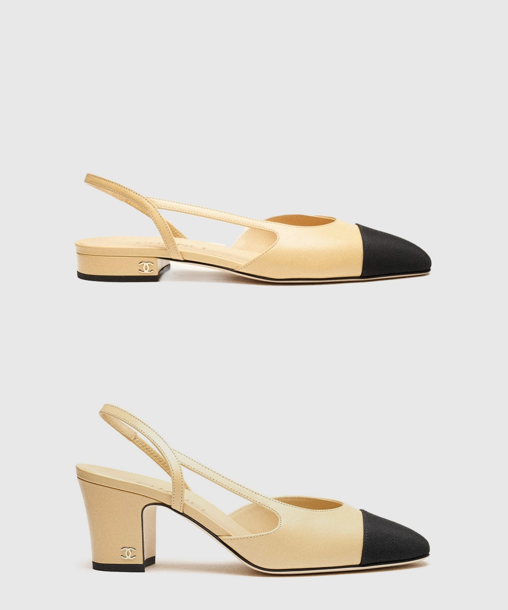 샤넬 클래식 슬링백 투톤 베이지 블랙 6.5cm(미들)