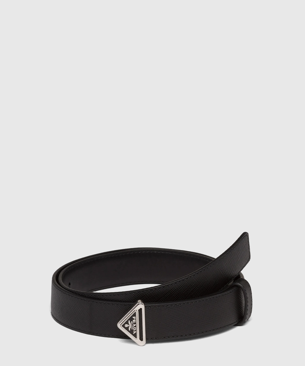프라다 삼각로고 사피아노 가죽 벨트 블랙 2CM217
