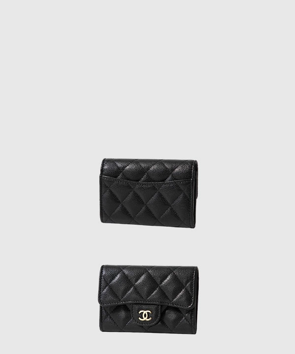 샤넬 클래식 플랩 지퍼 카드지갑 캐비어 블랙 금장 AP4096
