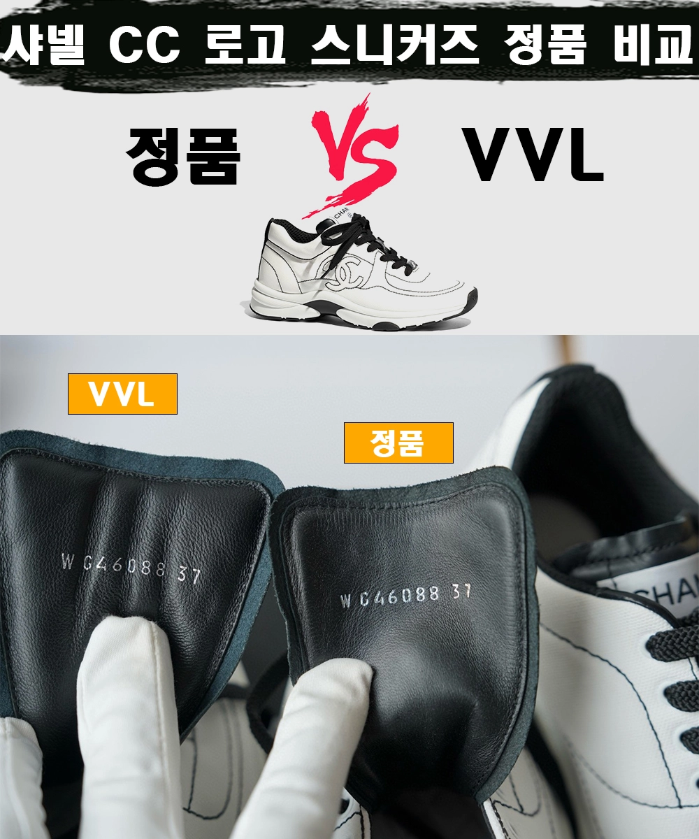 [제작 비교샷] - 샤넬 CC 로고 스니커즈 화이트 > ORIGINAL vs - 정품 비교