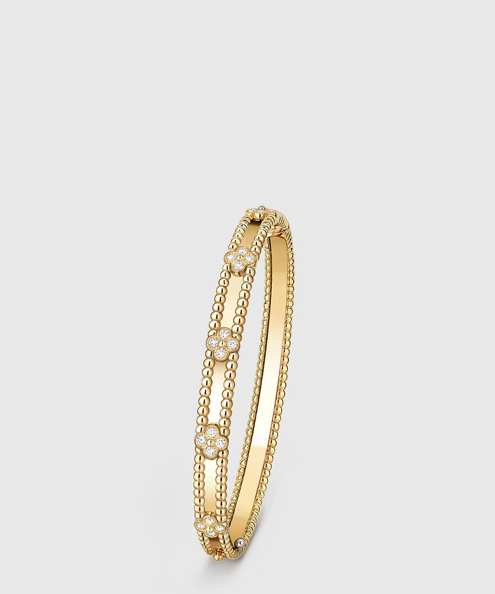반클리프 뻬를리 클로버 브레이슬릿 미디엄 모델 옐로우 골드 다이아몬드 3YB00