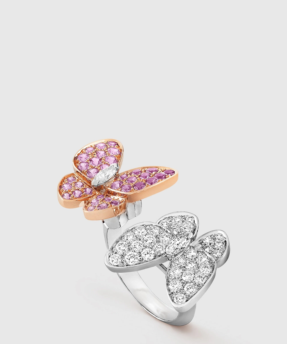반클리프 투 버터플라이 비트윈 더 핑거 링 화이트골드 다이아몬드 사파이어 3M500