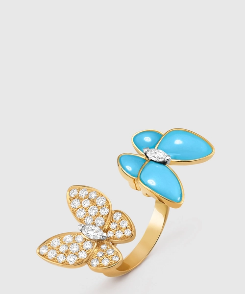 반클리프 투 버터플라이 비트윈 더 핑거 링 옐로우 골드 다이아몬드 터콰이즈 7UZ00 > [반지]