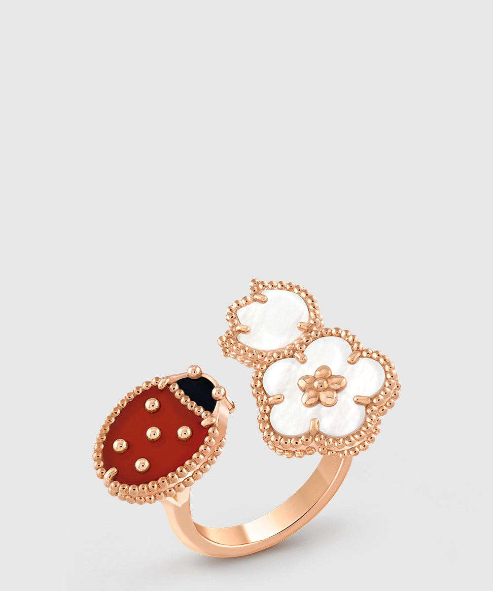 반클리프 럭키 스프링 비트윈 더 핑거 링 로즈 골드 마더오브펄 오닉스 커넬리언 VCARP9X300