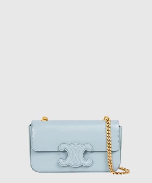 셀린느 샤이니 카프스킨 퀴르 트리오페 체인 숄더백 아이스 블루 199243