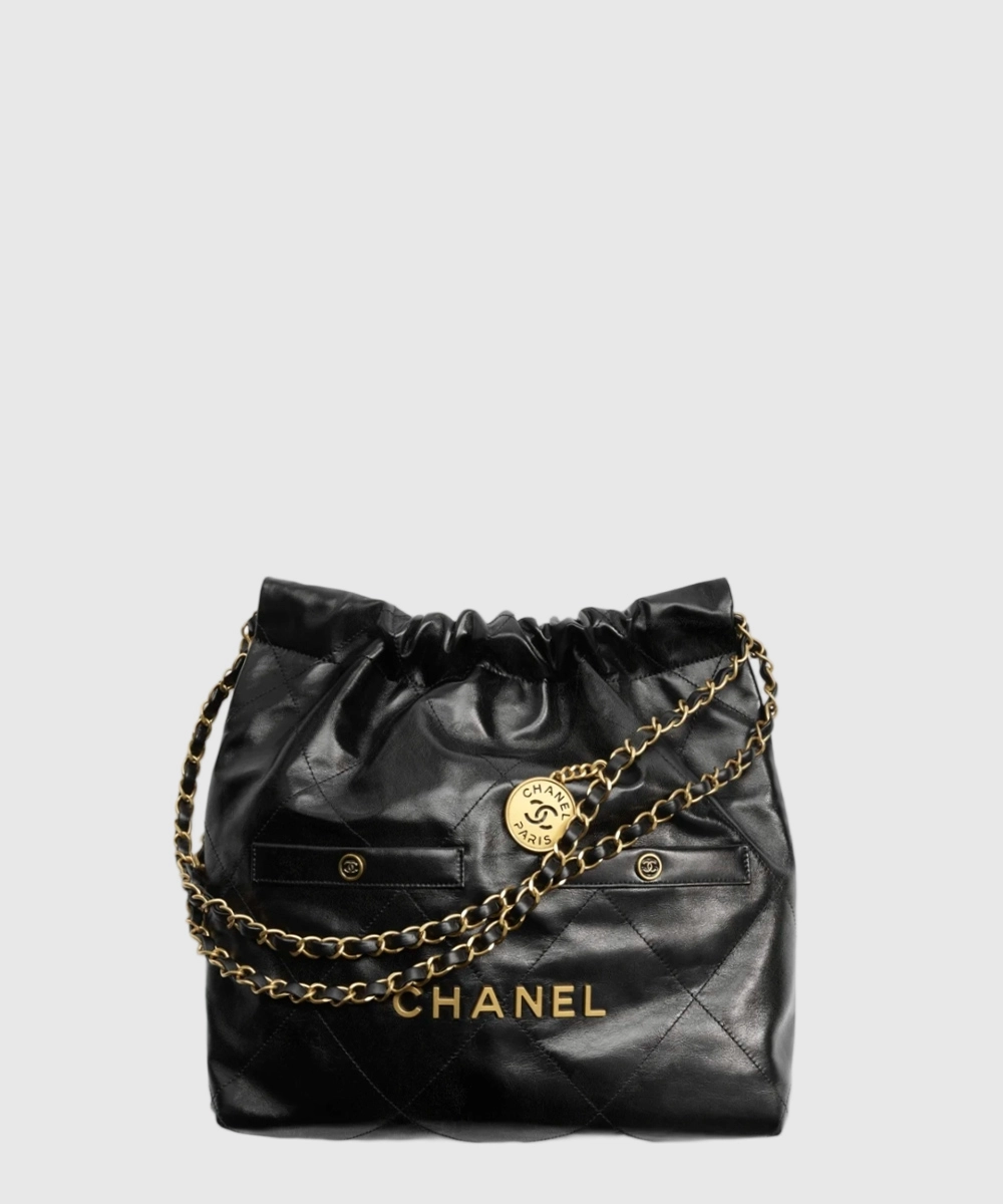 샤넬 22 스몰 핸드백 샤이니 크럼플드 카프스킨 블랙 AS3262 > 샤넬