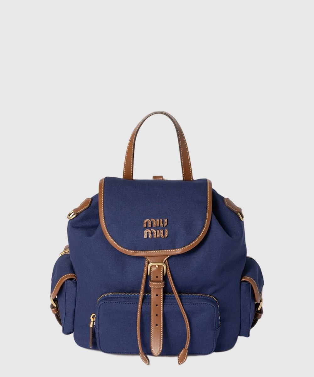 미우미우 캔버스 및 가죽 백팩 콘플라워 블루 브랜디 5BZ043