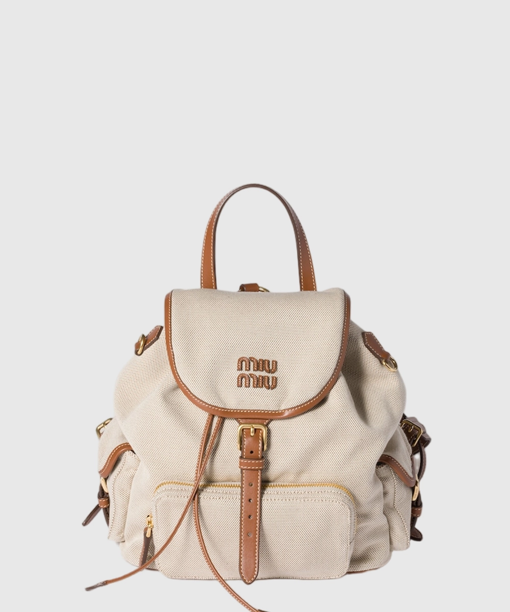 미우미우 캔버스 및 가죽 백팩 베이지 브랜디 5BZ042 > [백팩]