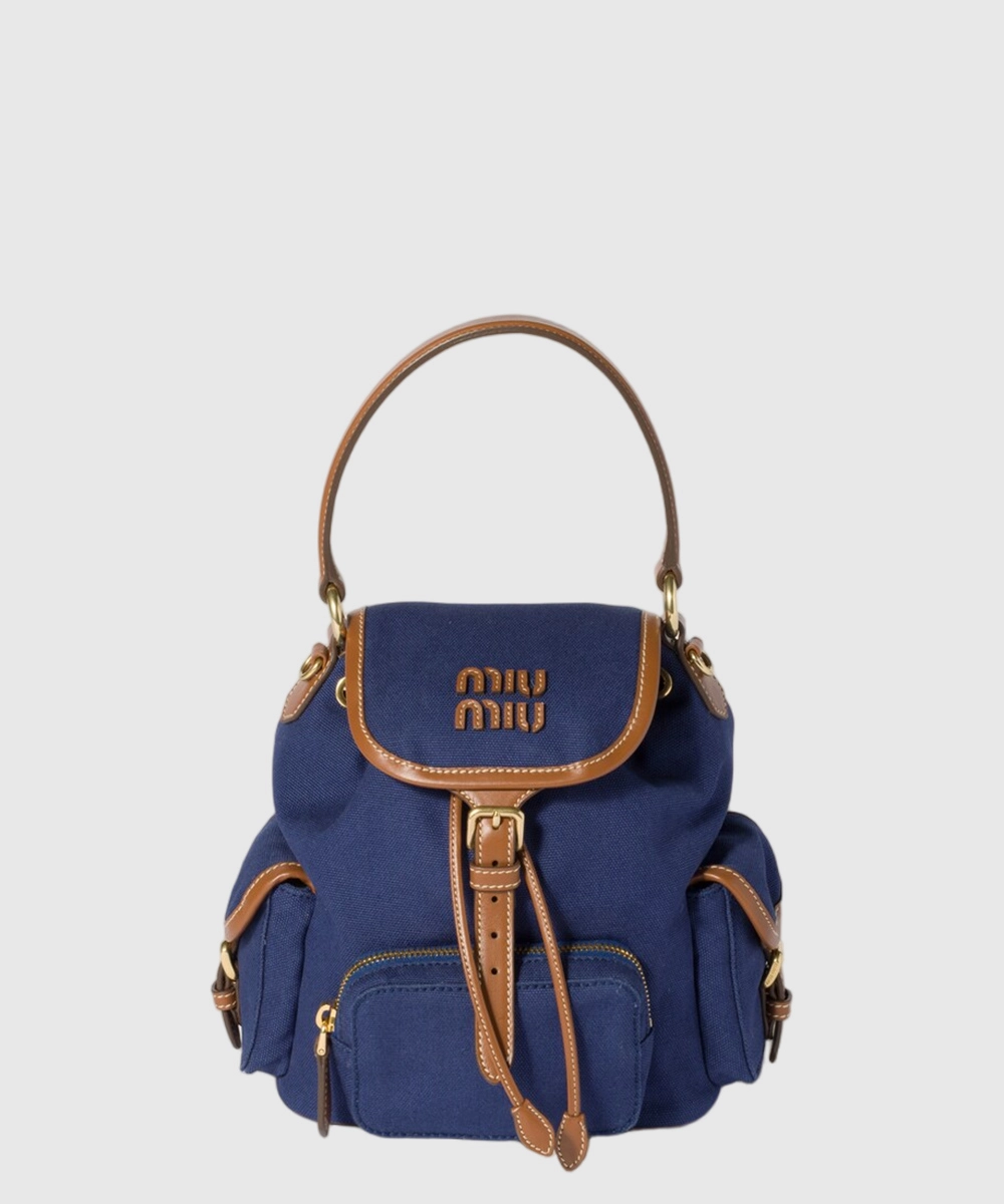 미우미우 캔버스 및 가죽 백팩 콘플라워 블루 브랜디 5BZ043
