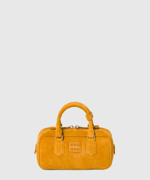 미우미우 아르카디 패딩 스웨이드 탑 핸들 백 위스키 5BB142 > [크로스백 & 숄더백]