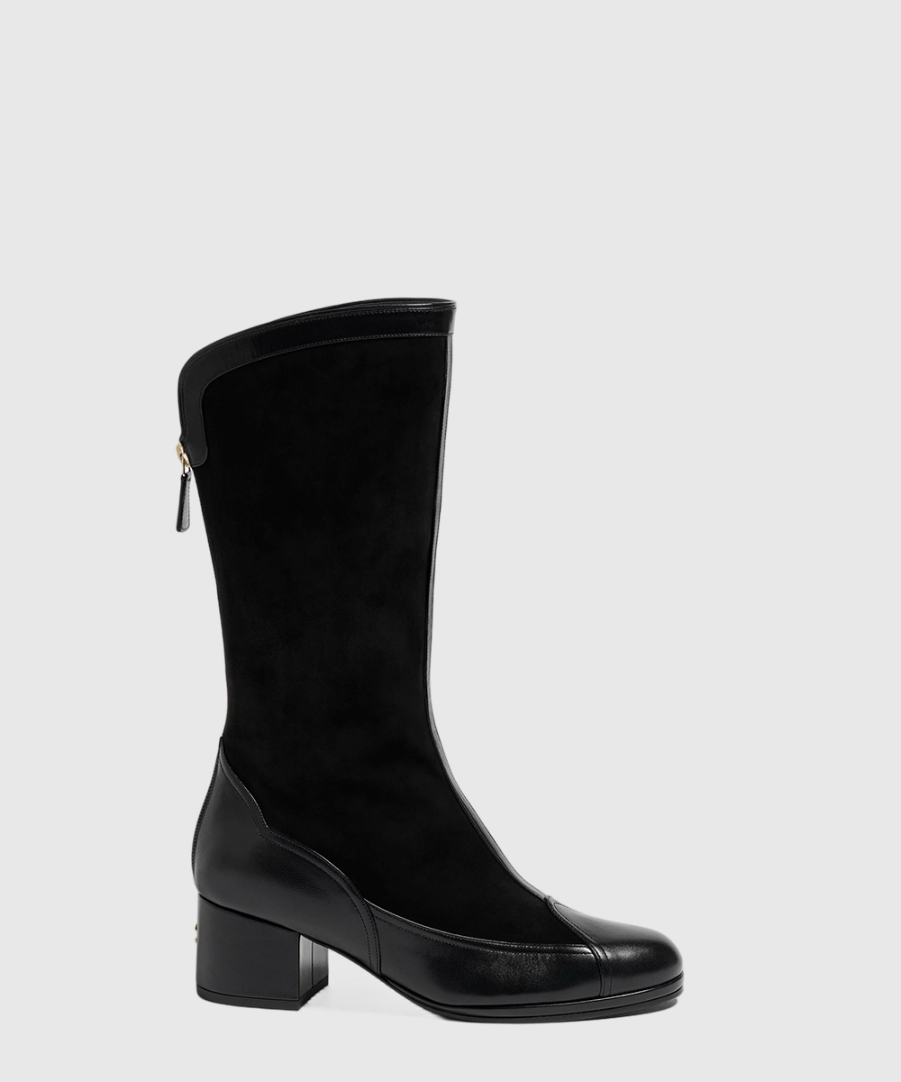 샤넬 하이 부츠 스웨이드 카프스킨 램스킨 블랙 G46591