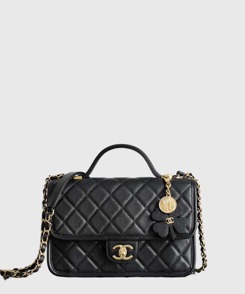 샤넬 클로버 참 탑핸들 플랩백 블랙 AS3653