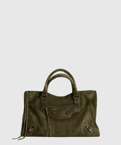 발렌시아가 르 시티 백 미디엄 카키 스웨이드 카프스킨 8230582AB2A3503