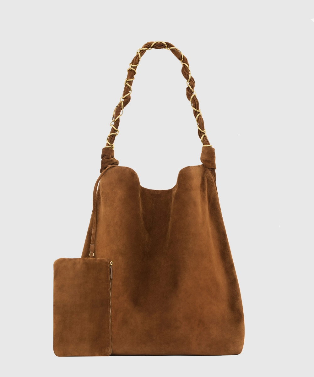 생로랑 스웨이드 소재의 AMALIA 스웨이드 카멜 코냑 8347501U80W2916