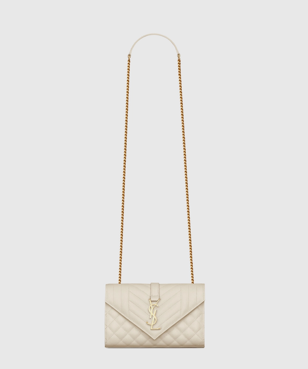 생로랑 그랑 드 뿌드르 퀼팅 가죽 엔벨로프 미디엄 블랑 빈티지 600185