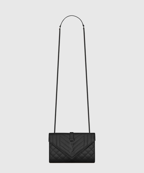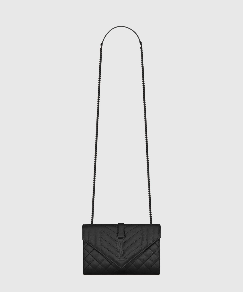 생로랑 그랑 드 뿌드르 퀼팅 가죽 엔벨로프 스몰 블랙 블랙 메탈 600195 > [크로스백 & 숄더백]