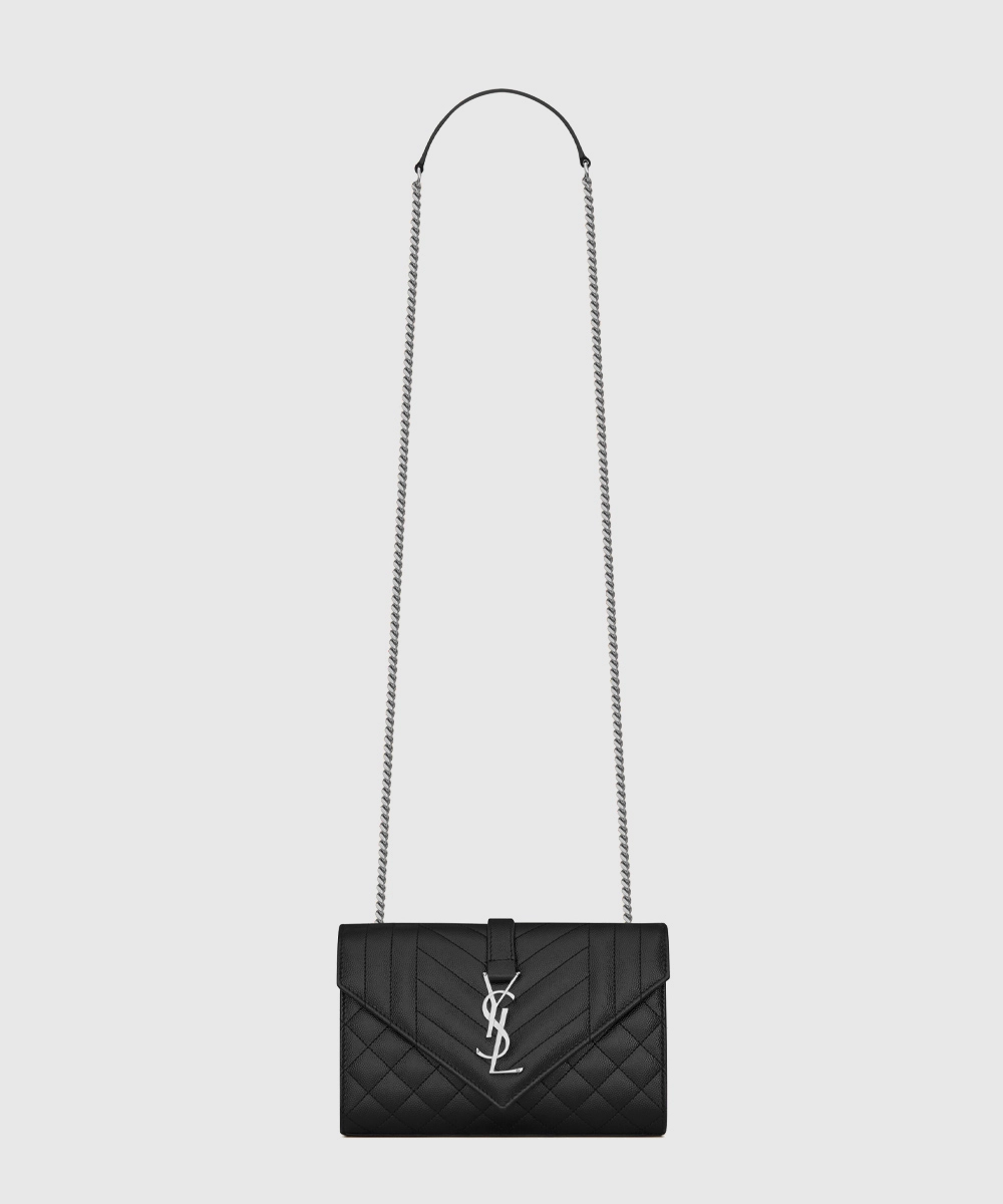 생로랑 그랑 드 뿌드르 퀼팅 가죽 엔벨로프 스몰 블랙 실버 메탈 600195