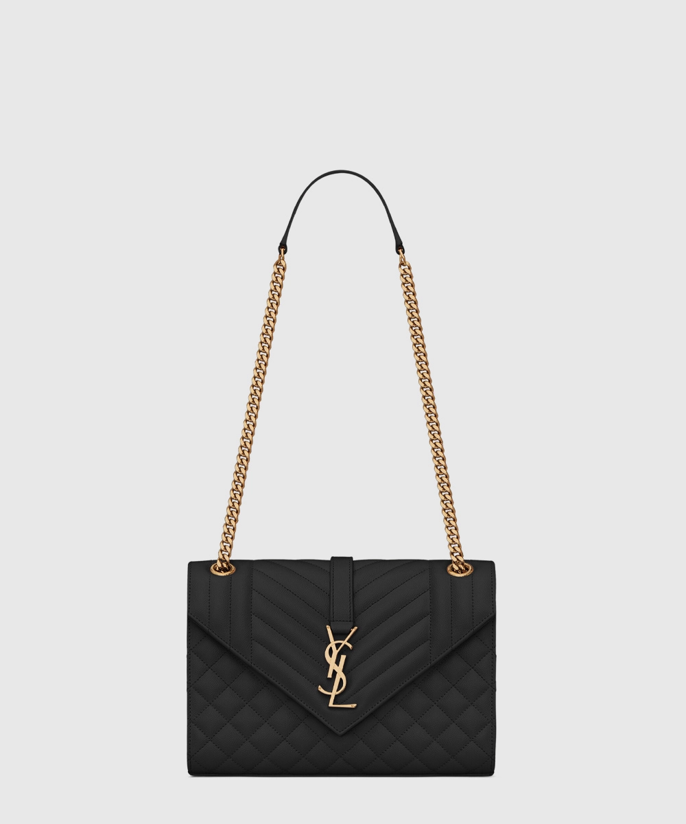 생로랑 그랑 드 뿌드르 퀼팅 가죽 엔벨로프 미디엄 블랙 골드 메탈 600185 > [크로스백 & 숄더백]