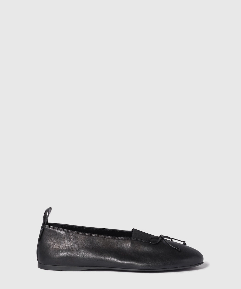 미우미우 엘랑 나파 가죽 발레리나 슈즈 블랙 5F552E