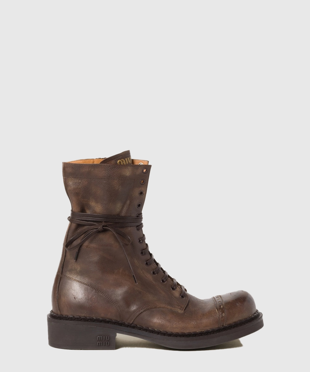 미우미우 가죽 레이스 부티 코코아 브라운 5U316E > [부츠]