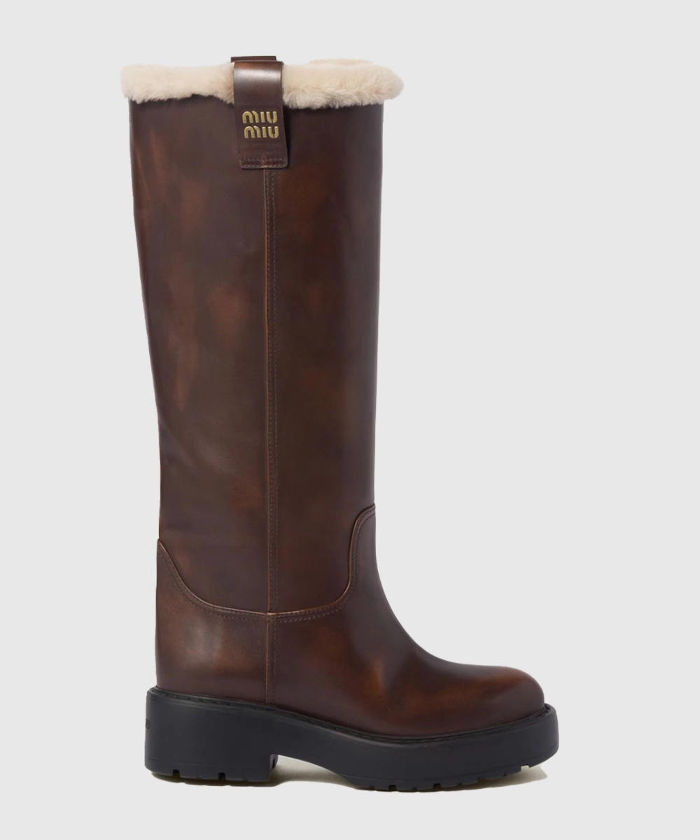 미우미우 퓌메 가죽 부츠 시에나 5W971D