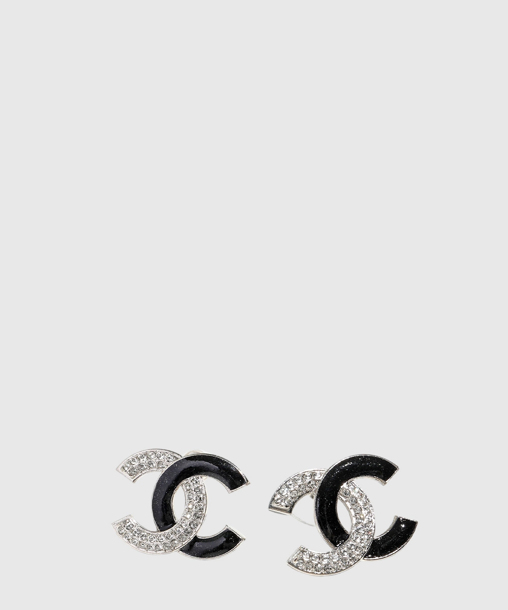 샤넬 CC로고 하프 블랙 실버 이어링 ABB931