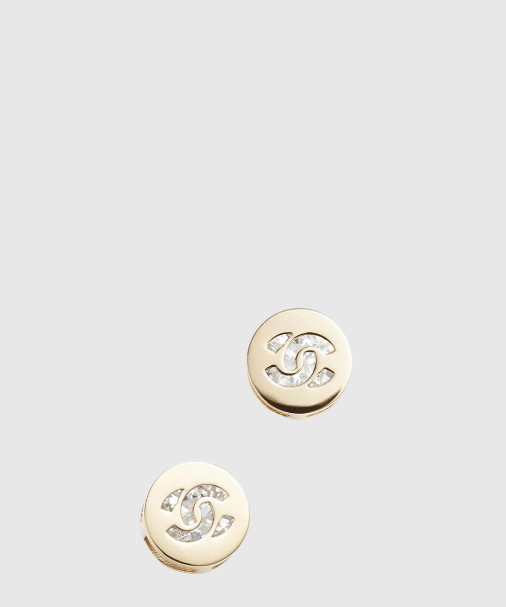 샤넬 CC로고 크리스탈 라운드 스터드 이어링 ABE107