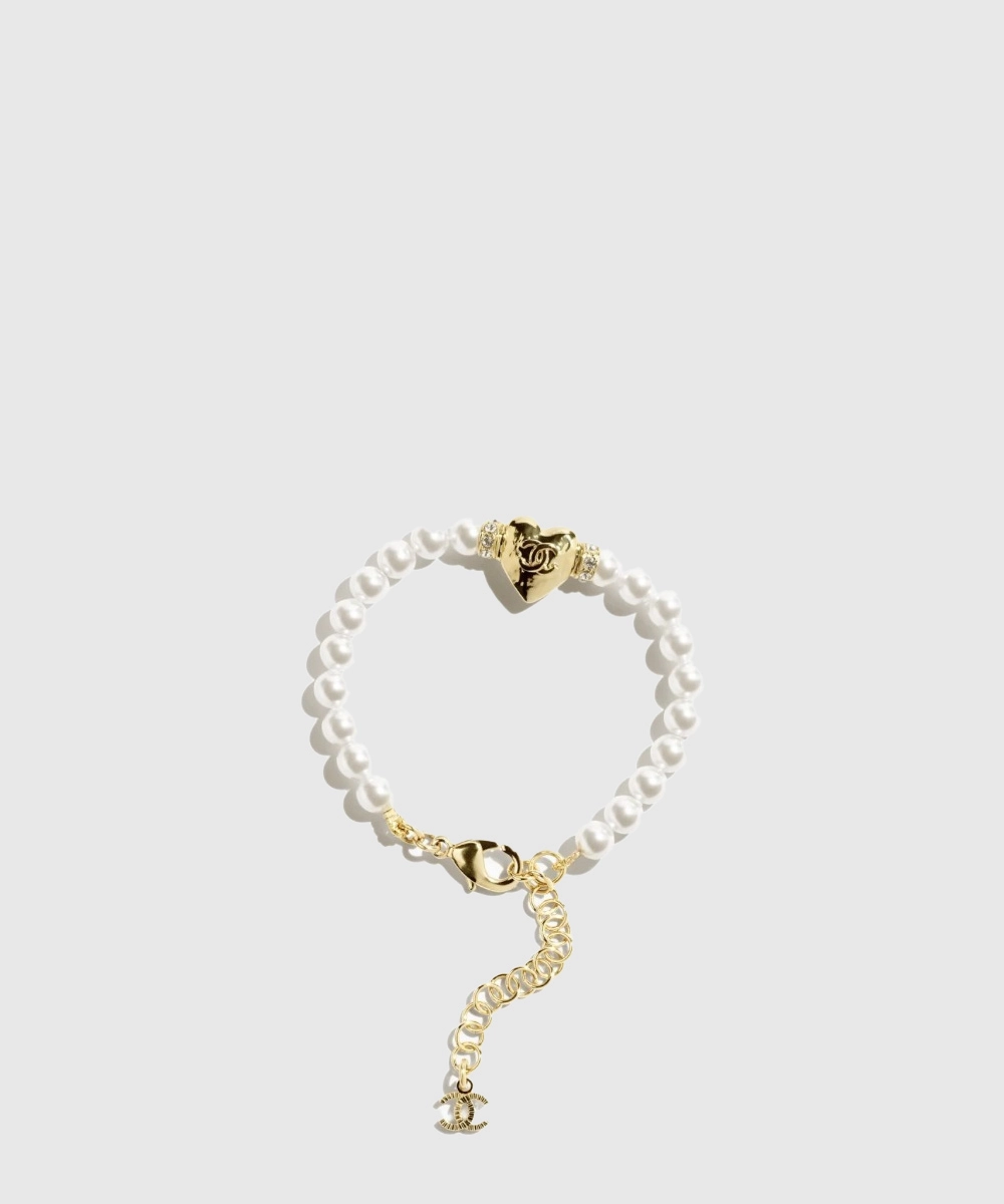 샤넬 골드 하트 CC로고 메탈 글래스 진주 펄 브레이슬릿 ABD085 > [팔찌]