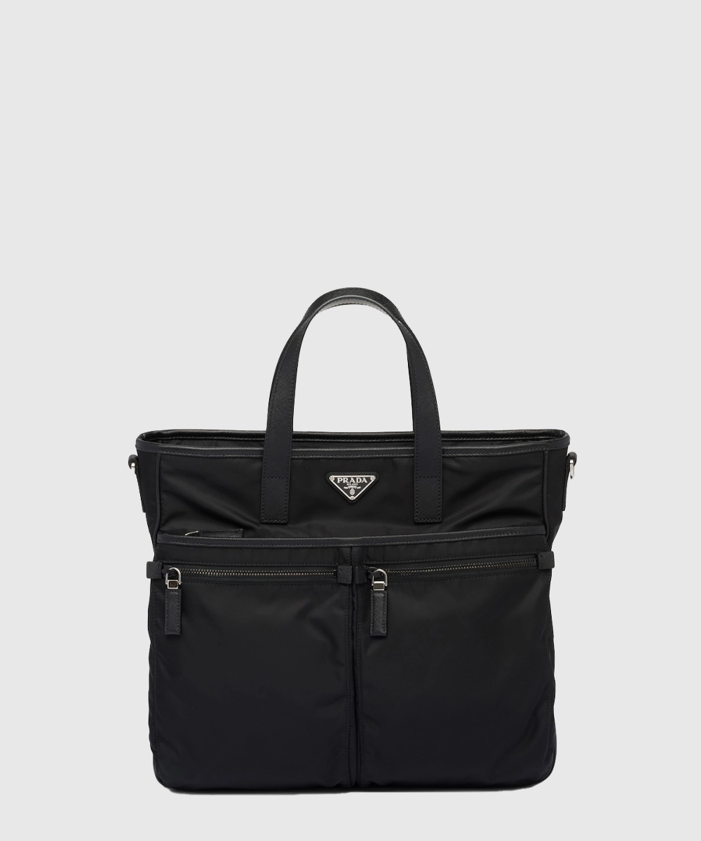 프라다 리나일론 및 사피아노 가죽 토트백 블랙 2VG860