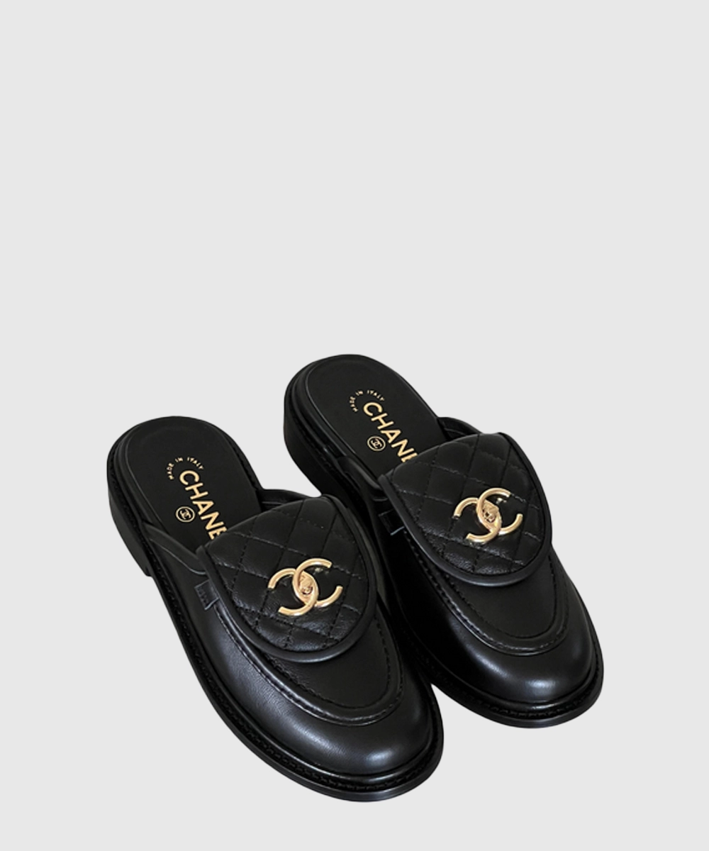 샤넬 CC 로고 턴락 뮬 블로퍼 블랙 G46120