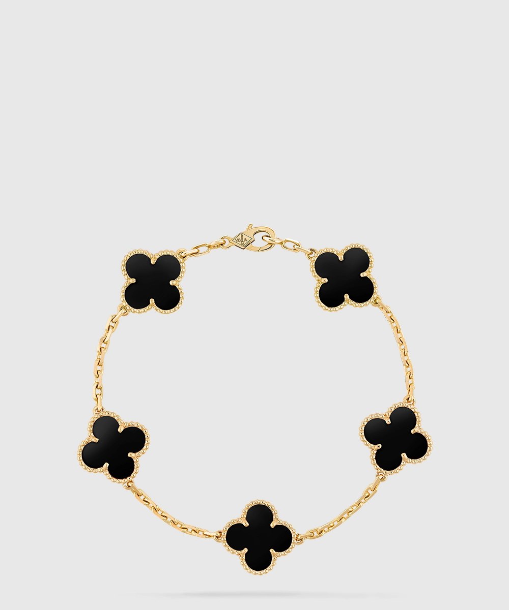 반클리프 빈티지 알함브라 브레이슬릿 5개 모티브 오닉스 41300 옐로우 골드